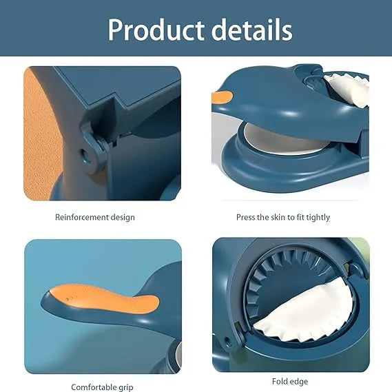 Quickly Prepared Dumplings: Place the dough on the dumpling machine, pull down the handle and press the dumpling skin. Place the dough on the surface, add your favourite fillings on the dough, then close the mould and press to seal a perfect package.
